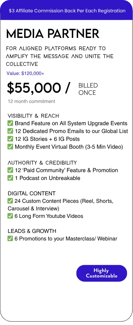 Global reach of 500,000+ High Vibe Seekers across social media, Skool, YouTube, email and SMS
